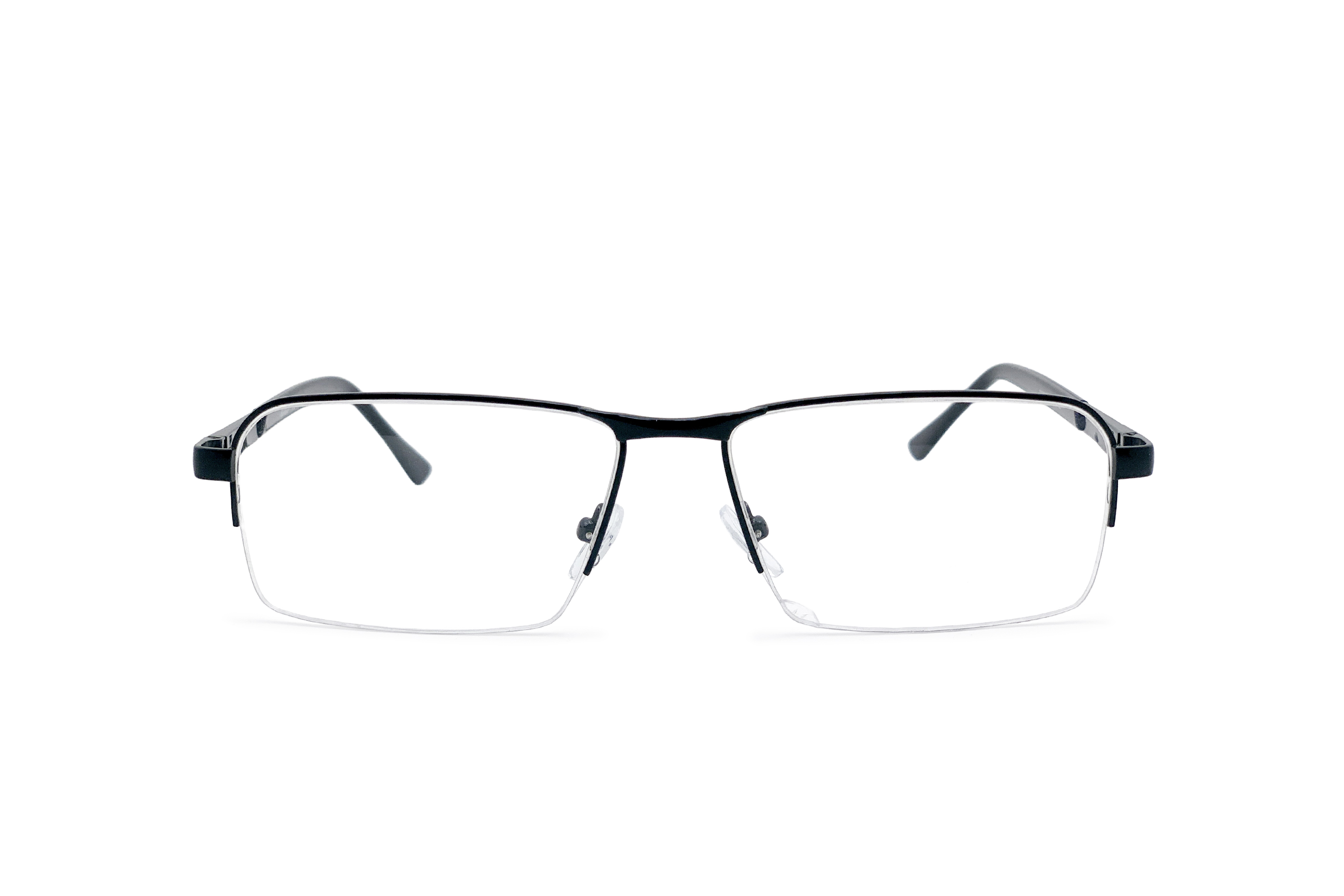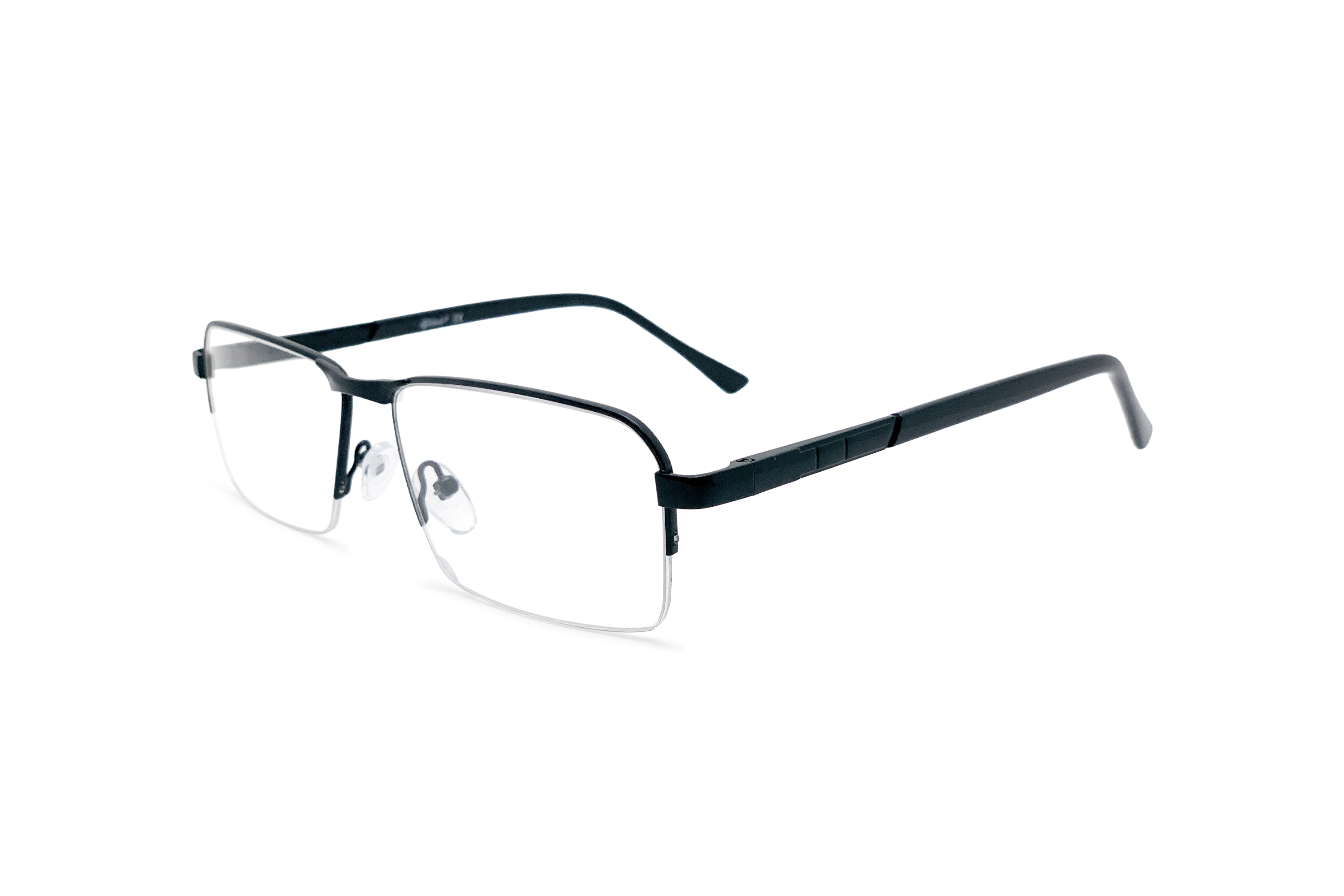 Мужская оправа для очков прямоугольной формы сделана из металла. Основной цвет: черный. В оправе установлены временные линзы, не предназначенные для постоянного ношения. В комплекте к заказу идет салфетка для ухода за очками.
