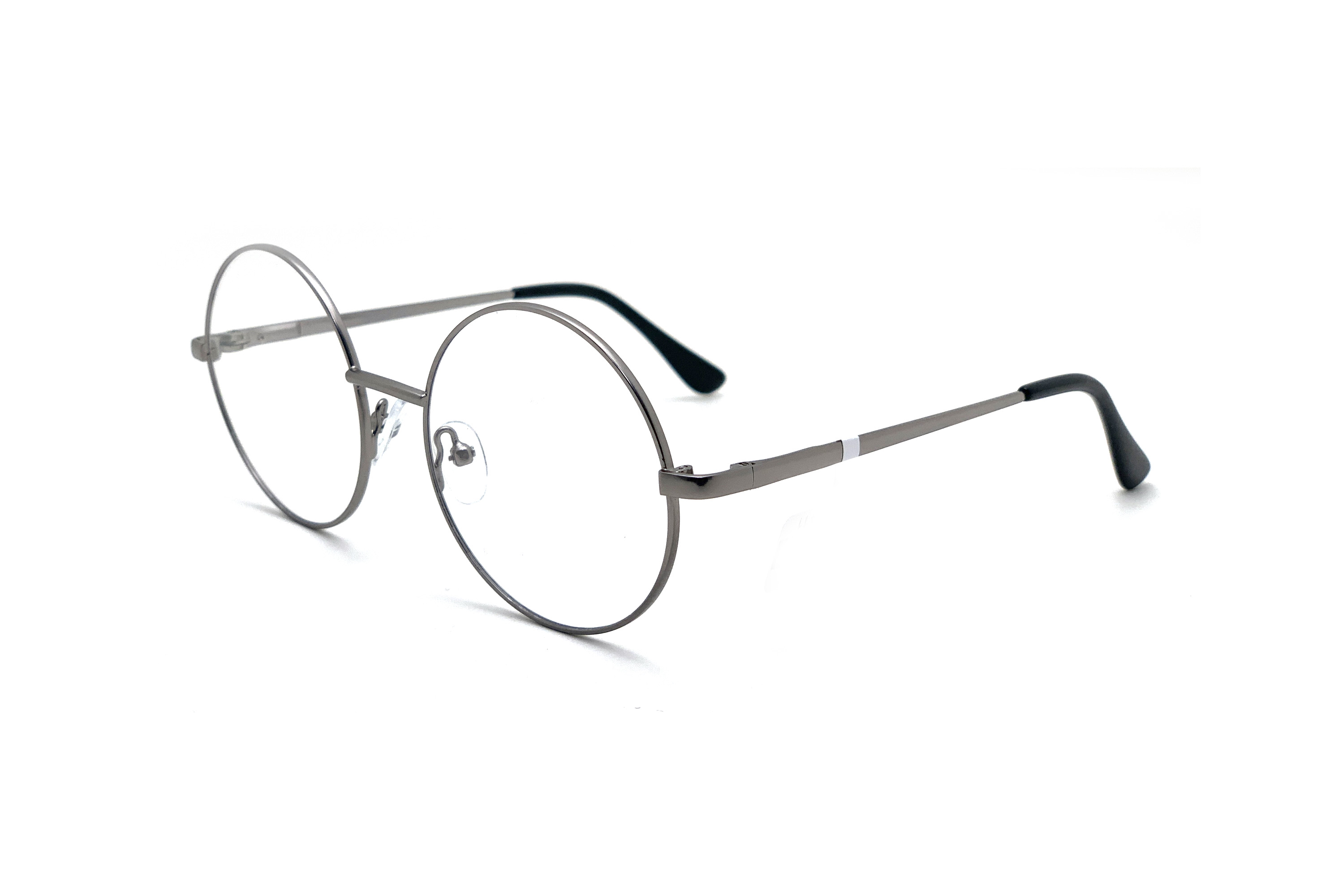 Унисекс оправа для очков округлой формы сделана из металла. Основной цвет: серебристый. В оправе установлены временные линзы, не предназначенные для постоянного ношения. В комплекте к заказу идет салфетка для ухода за очками.