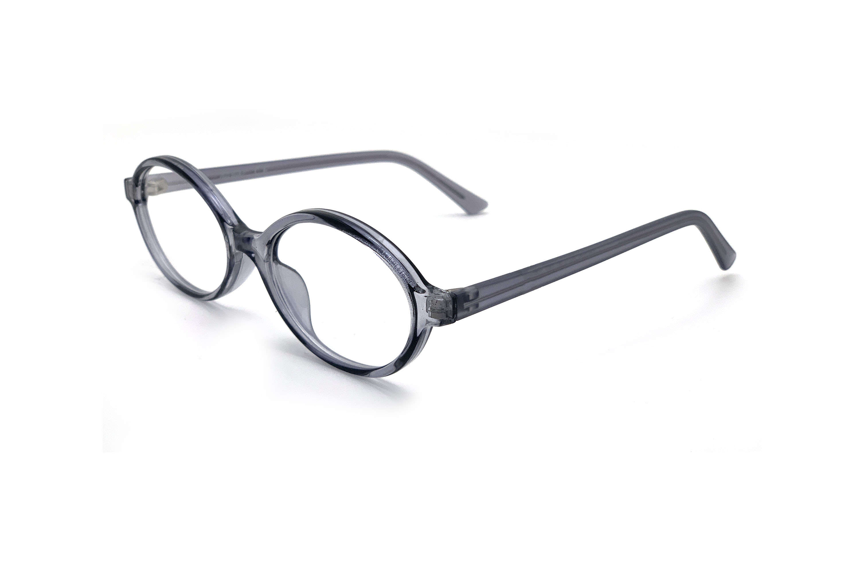Женская оправа для очков округлой формы сделана из пластика. Основной цвет: серый. В оправе установлены временные линзы, не предназначенные для постоянного ношения. В комплекте к заказу идет салфетка для ухода за очками.