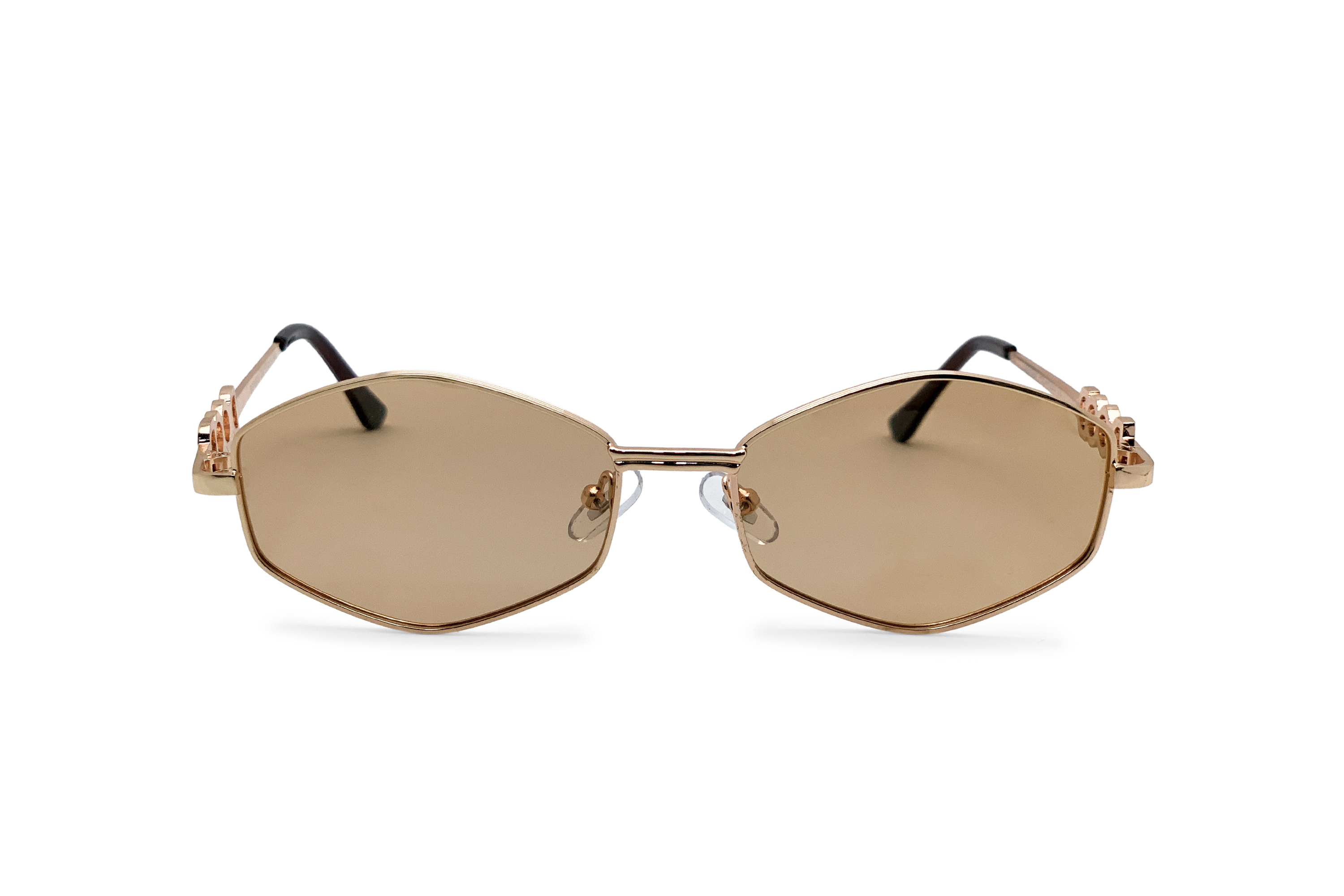 Золотистые солнцезащитные очки с линзами коричневого оттенка сделаны из металла. Подойдут как для девушек, так и для парней.